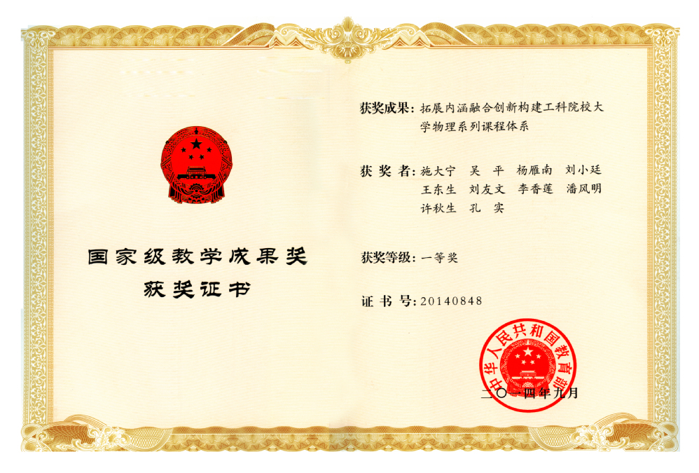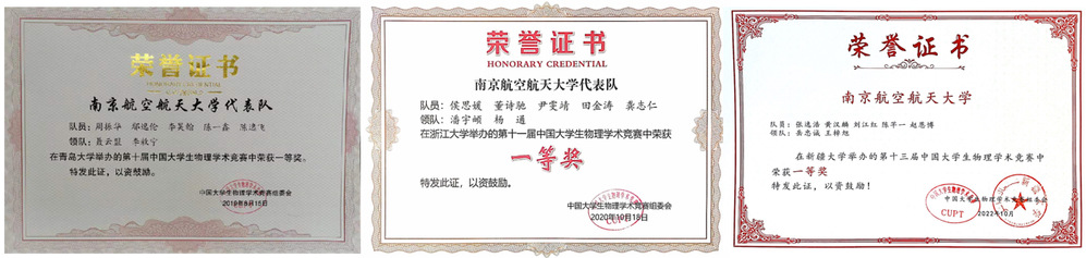 中国大91直播 物理91直播 竞赛一等奖获奖证书