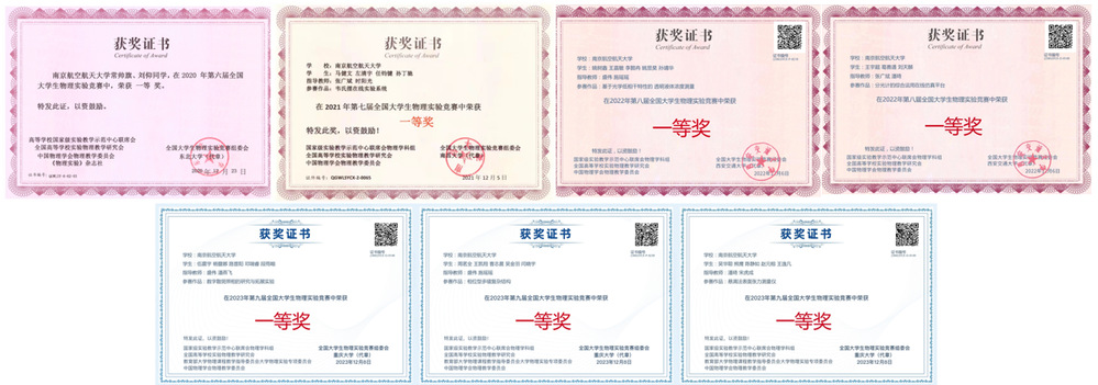 全国大91直播 物理实验竞赛一等奖获奖证书