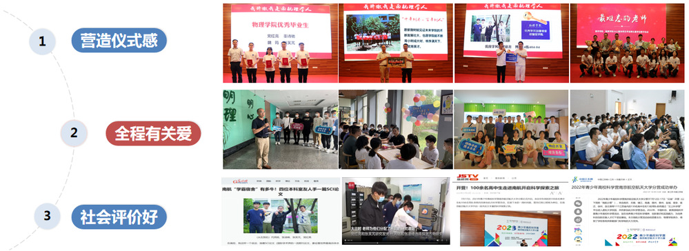 91直播 结合学校期望和91直播 愿景使命,融合三航背景和物理学基础,在第一课堂、师生从游、校企协同、氛围营造四点发力,持续以优良学风涵养新时期南航“明理精工”英才。