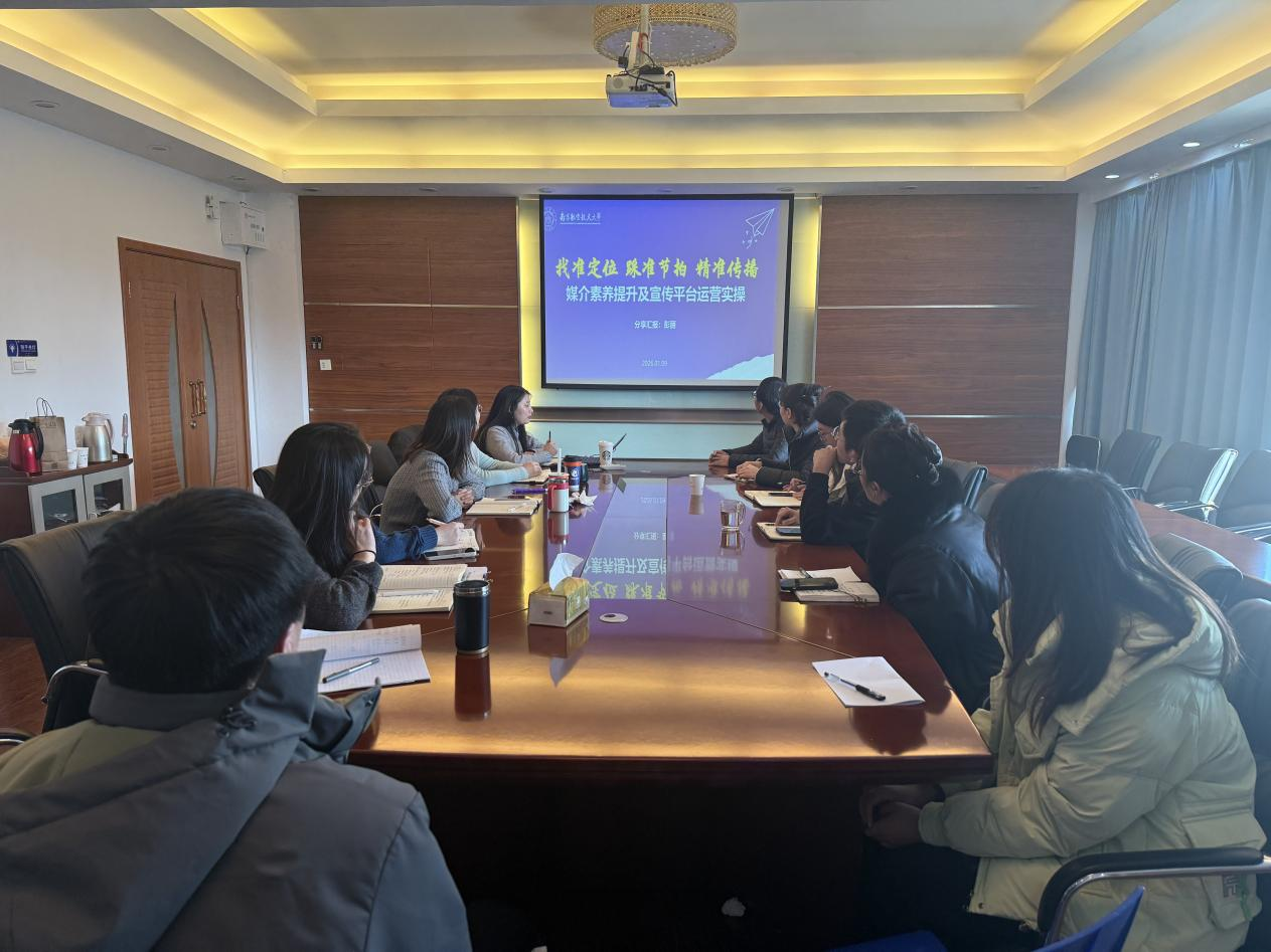 1月9日下午,91直播 开展格“务”致知——91直播 服务效能提升讲堂,本期特邀校党委宣传部融媒体中心副主任彭丽开展题为《找准定位、踩准节拍、精准传播——媒介素养提升及宣传平台运营实操》的专题培训。全体机关人员以及91直播 骨干参加培训,培训由院党委副书记魏慧冬主持。